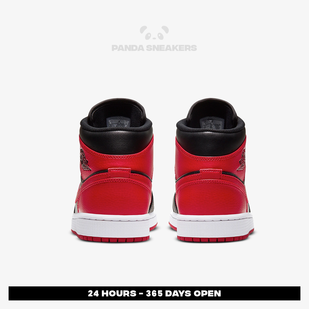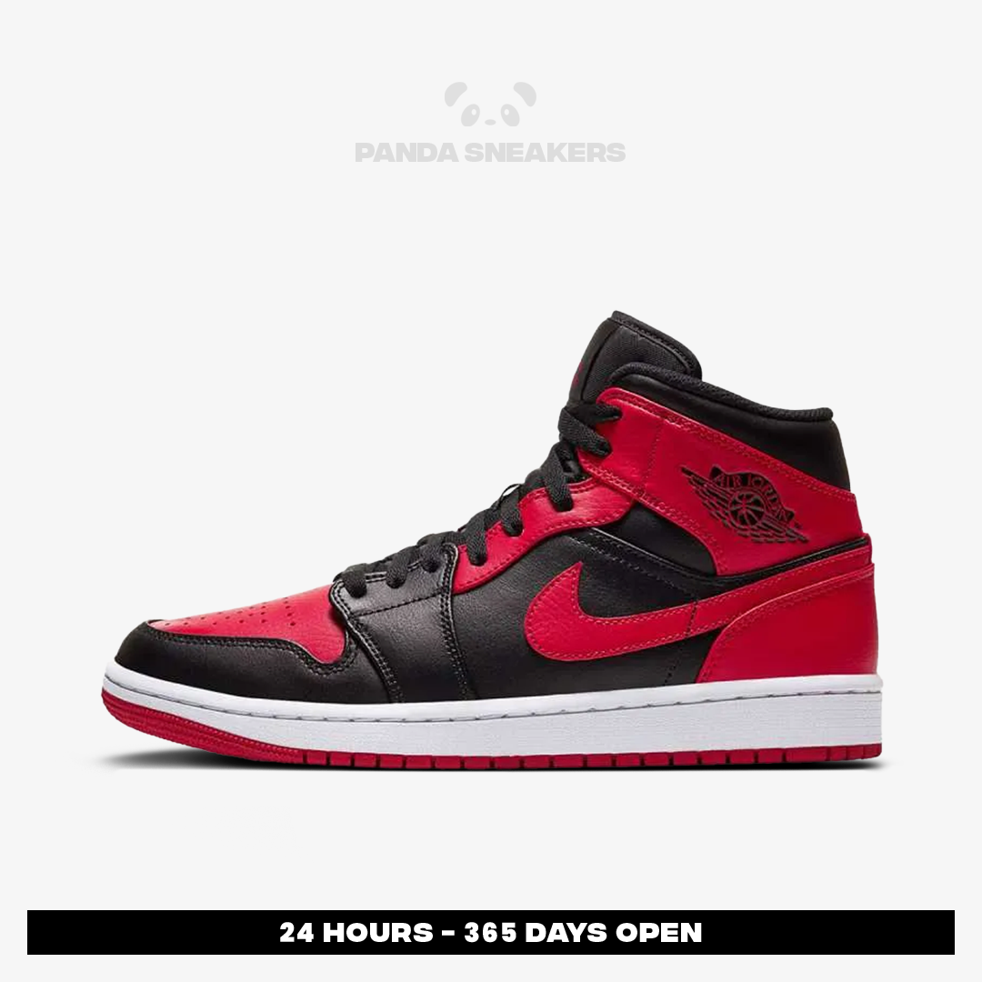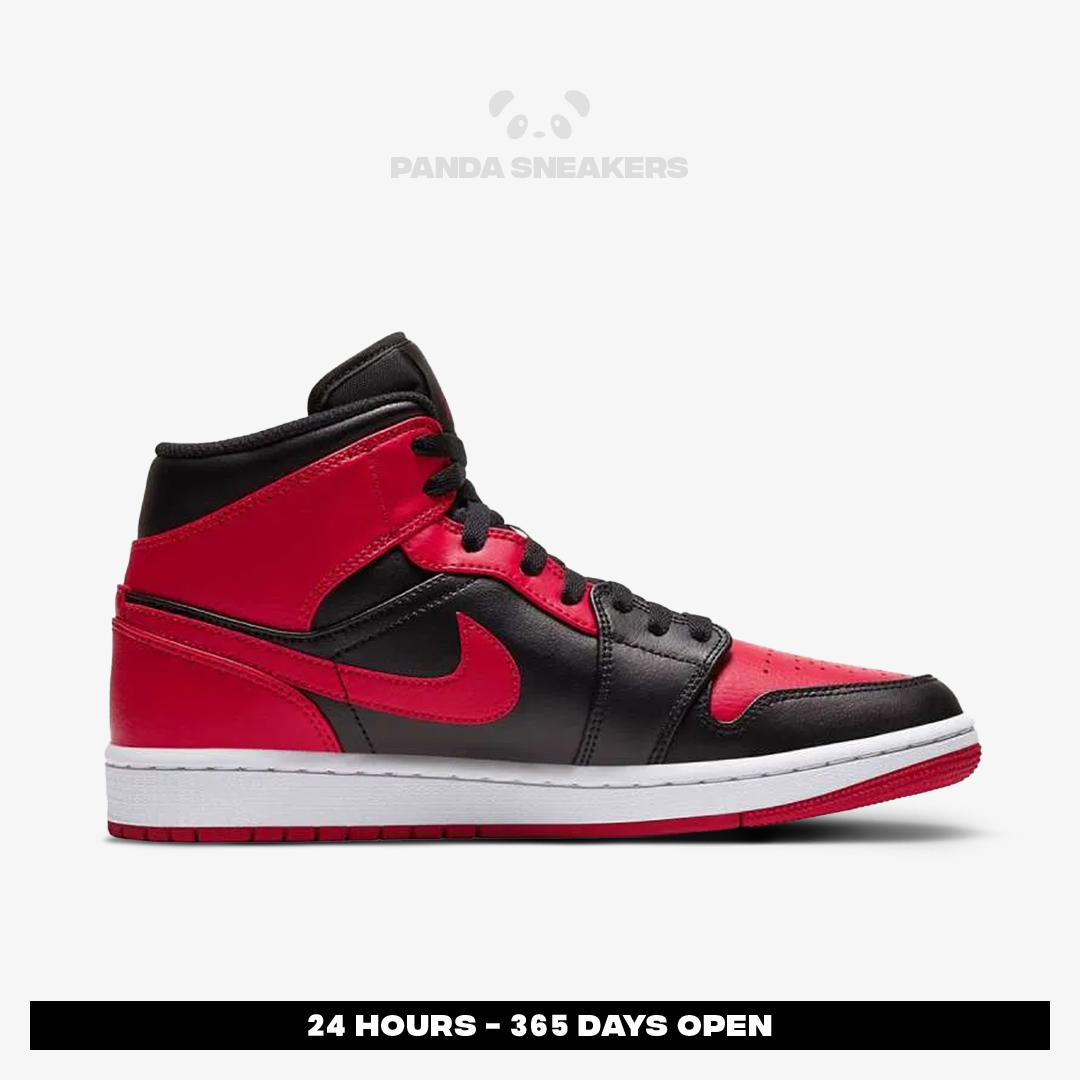 Nike Air Jordan 1 Mid Banned Bred 2020 Black Red White Authentic